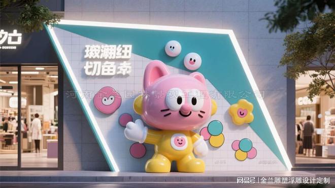 随着消费升级,店面装饰正经历从 视觉猎奇 到 文化表达 的蜕变。2025 年 五一 期间,王府井集团通过 首店经济 + 文化体验 模式,将二次元、宠物社交等多元文化元素融入商业空间,带动奥莱业态销售增长超历史高位开云真人。这种趋势在雕塑设计领域表现为三大方向:其一,地域文化 IP 化,如金兰园林景观为郑州某商业综合体设计的《商鼎图腾》,将青铜纹样与现代几何线条结合,成为区域文化地标;其二,科技赋能体验,元宇宙背景下的互动式雕塑(如郑州三磨所改造项目),通过数字化场景打造赛博朋克氛围,实现线上流量向线下转化;其三,可持续设计,废旧材料循环利用(如磨街红砖再生项目)与环保材料应用(如无毒 196合成树脂)成为行业共识。